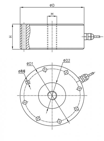 型号 | 量程(kN) | 量程(t) | D | D1 | D2 | H | M | Φ |