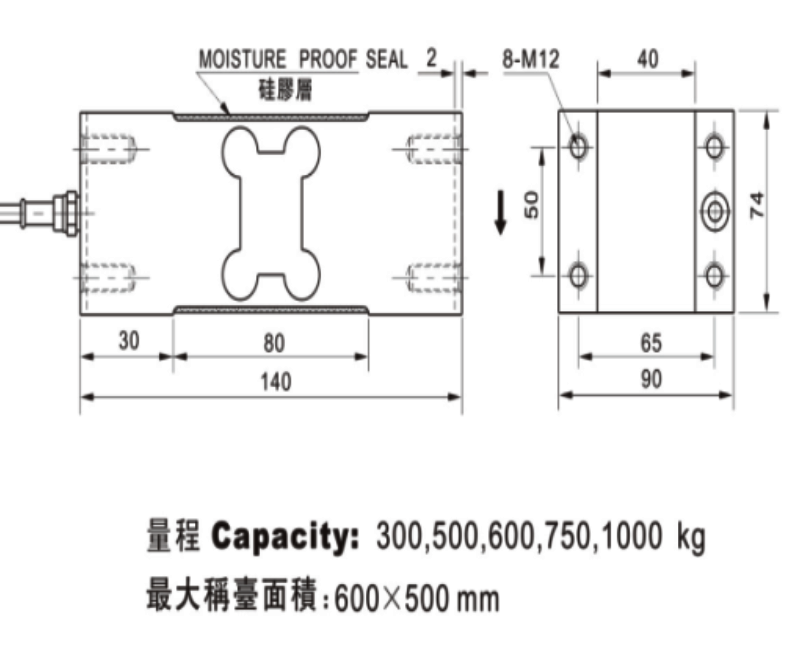 产品用途:TQ-L9平行梁称重传感器适用于计价秤,计数秤及台秤等力量测量设备。