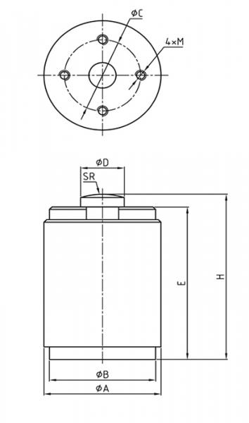 型号 | 量程(kN) | 量程(t) | A | B | C | H | E | M | SR | D |