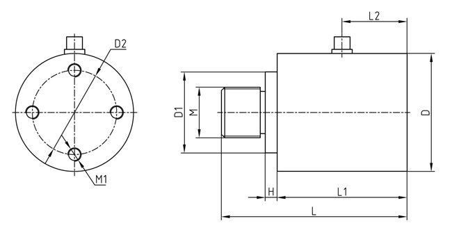 型号 | 量程(kN) | 量程(t) | D | D1 | D2 | M | L | L1 | L2 | H | M1 |