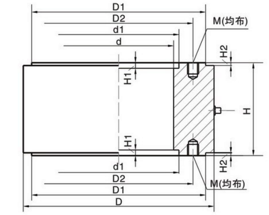 型号 | 量程(kN) | 量程(t) | D | D1 | D2 | d | d1 | H | H1 | H2 | M |